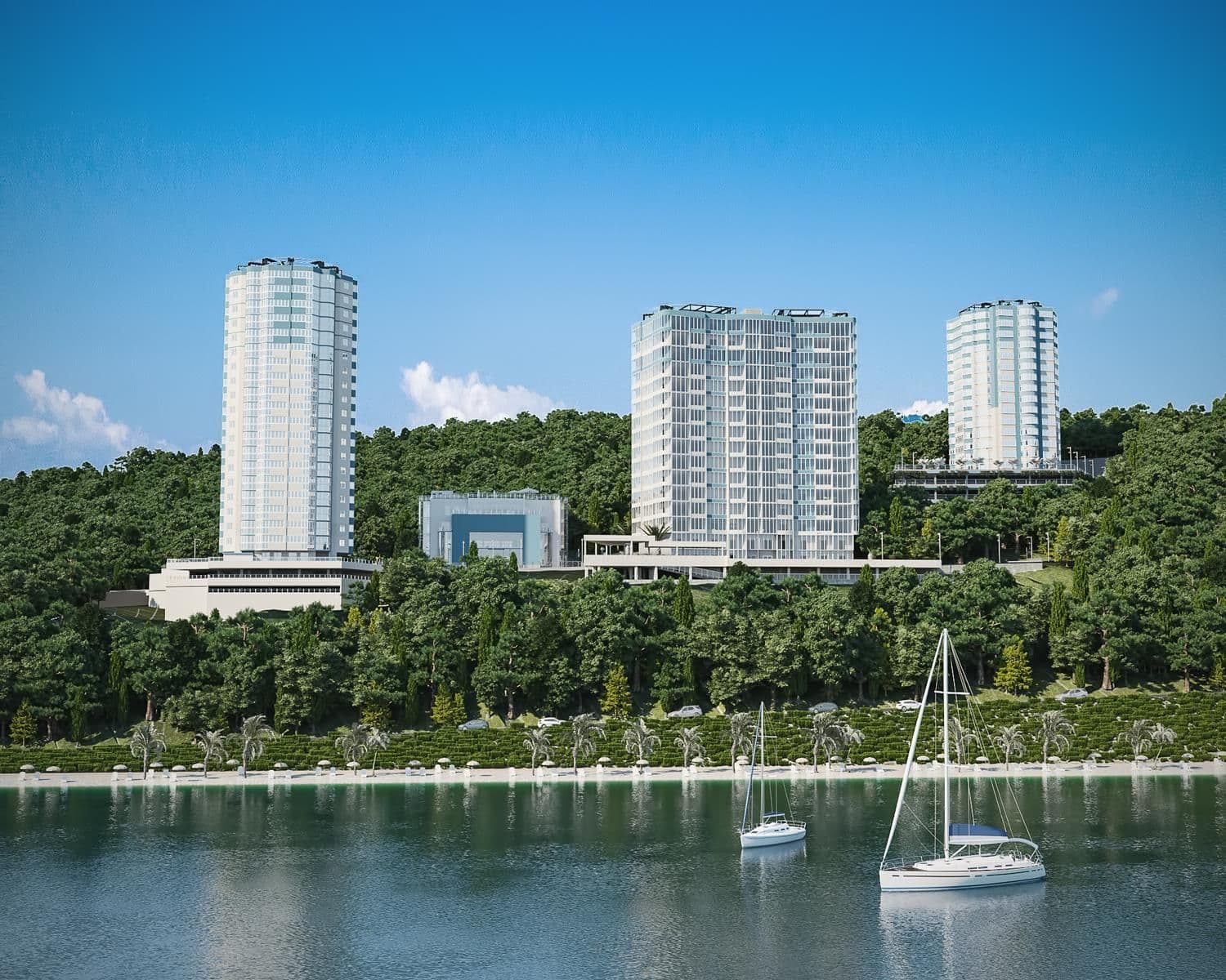 «Светский лес» - Курортная резиденция бизнес-класса с собственной набережной. Концепция проекта предполагает формирование «нового центра» в Хостинском районе города – при возведении будут использованы механизмы комплексного развития территории.